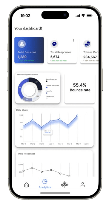 Users wanted a single-page “Health” view of bot performance (sessions, tokens, response time, daily chats).